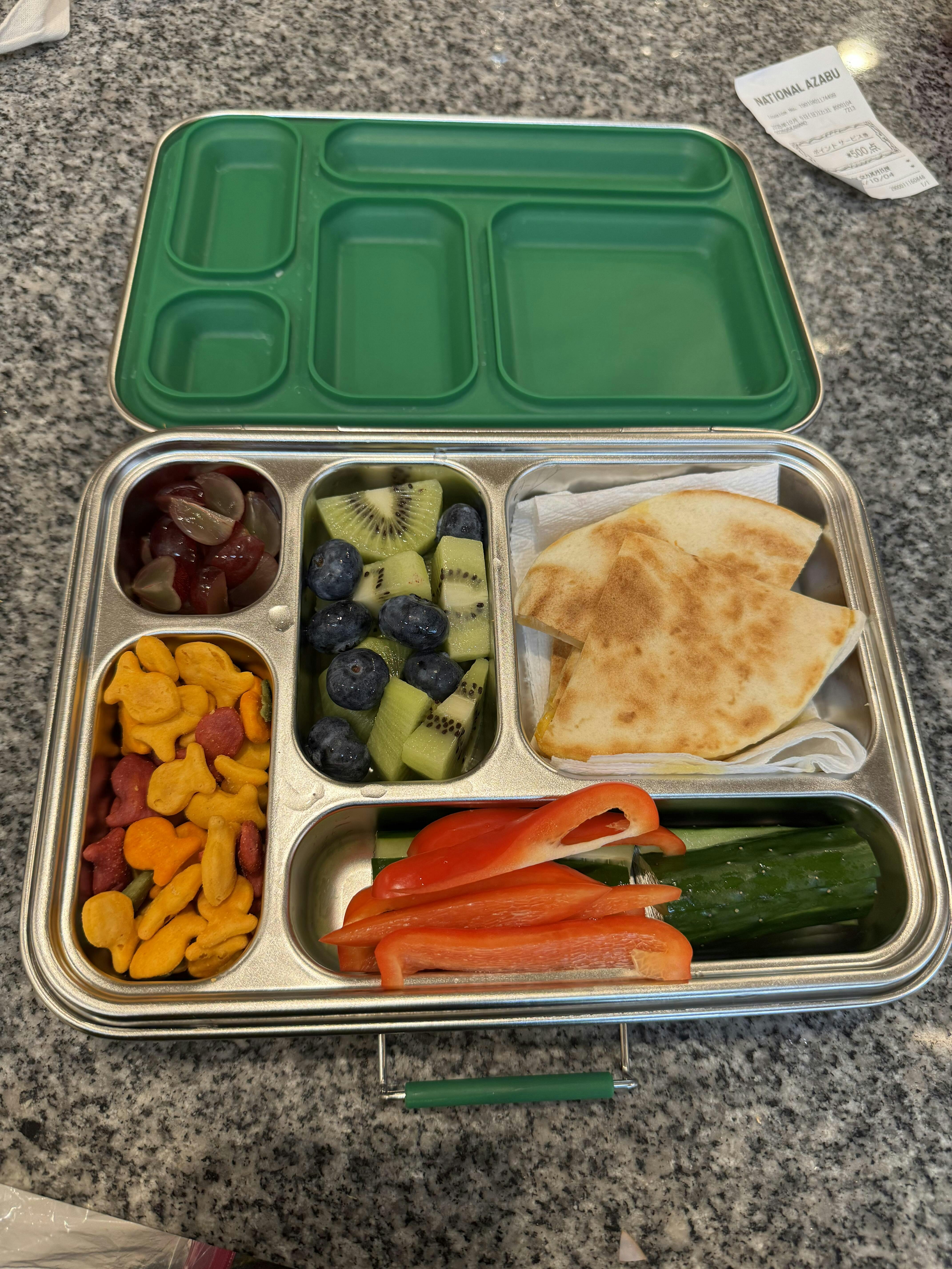 セットには5コンパートメント(仕切り)のランチボックスに加えて、2つの小さなコンテナが含まれています。これらのコンテナも密閉性があり中身がこぼれにくく、スープ、液体、ディップなどに最適です。